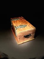 Approx dimensions; 14" x 7" x 5". Sized to hold 4 " x 6" recipe cards, two directions. Beautiful walnut wood and solid brass, handmade decorative hinges imported from India, and durable handles and hook hasp in black finish. Oil finished on the outside, with raw walnut on the inside for a dry, fresh storage.